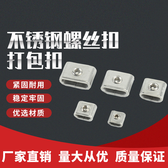 產品概述: 不銹鋼打包扣產品,其設計適用于單、雙層捆扎防腐蝕,適用于任何場所,分為C型/L型/O型/牙型/開口型不銹鋼打包扣系列,規(guī)格齊全,歡迎您訂購。